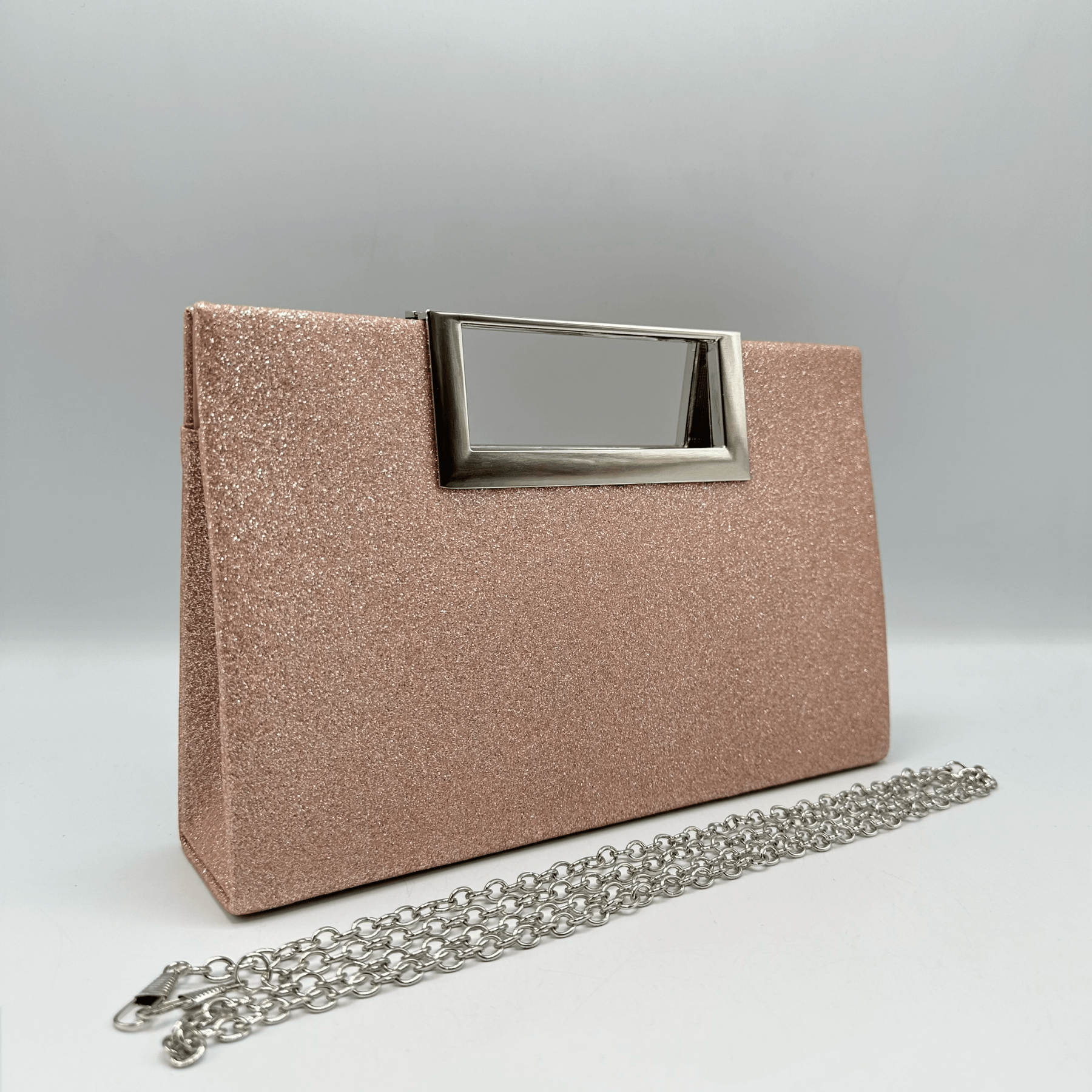 Su tamaño perfecto permite guardar con estilo: telefono, pintalabios, llaves, tarjeta y un toque de glamour.