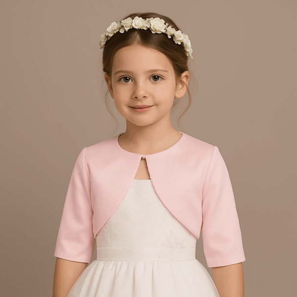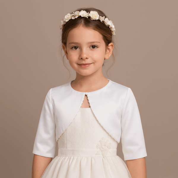 Bolero para Novia manga 3/4. Un toque sofisticado y elegante que va más allá del vestido, un abrigo suave para mantenerte cubierta a la novia en las bodas de primavera y verano.