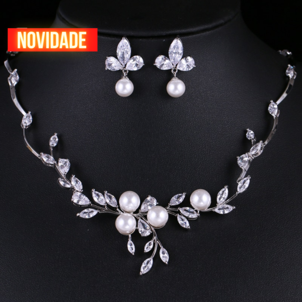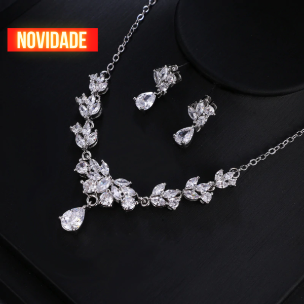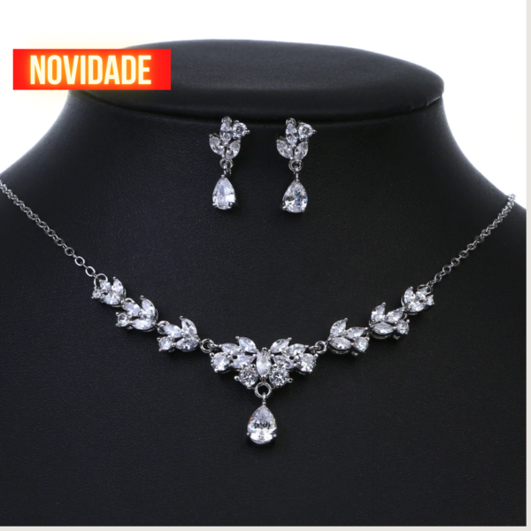 Conjunto de collar y pendientes, con cristales, clásico y elegante.