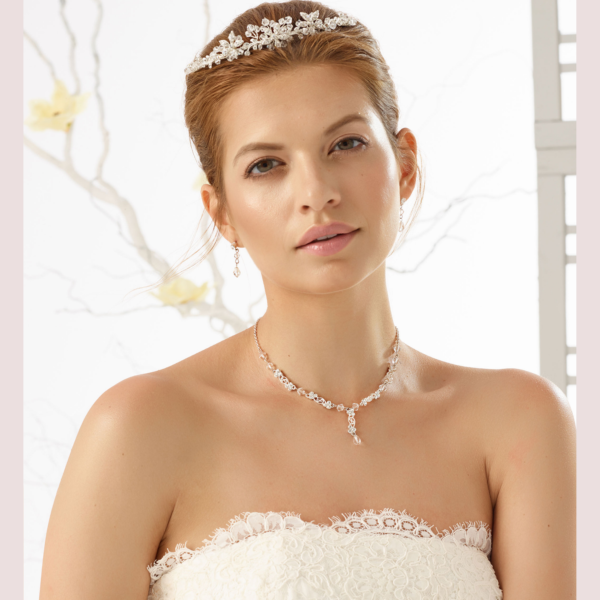 Conjunto de collar y pendientes, con cristales, clásico y elegante.