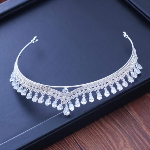 Tiara plateada con cristales.