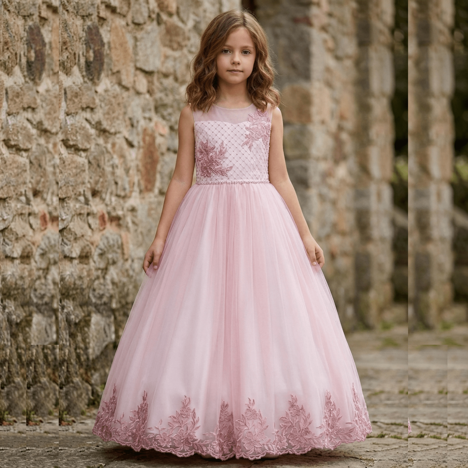 Vestido de ceremonia para niñas y adolescentes. Disponible desde la talla 4 hasta la talla 14.