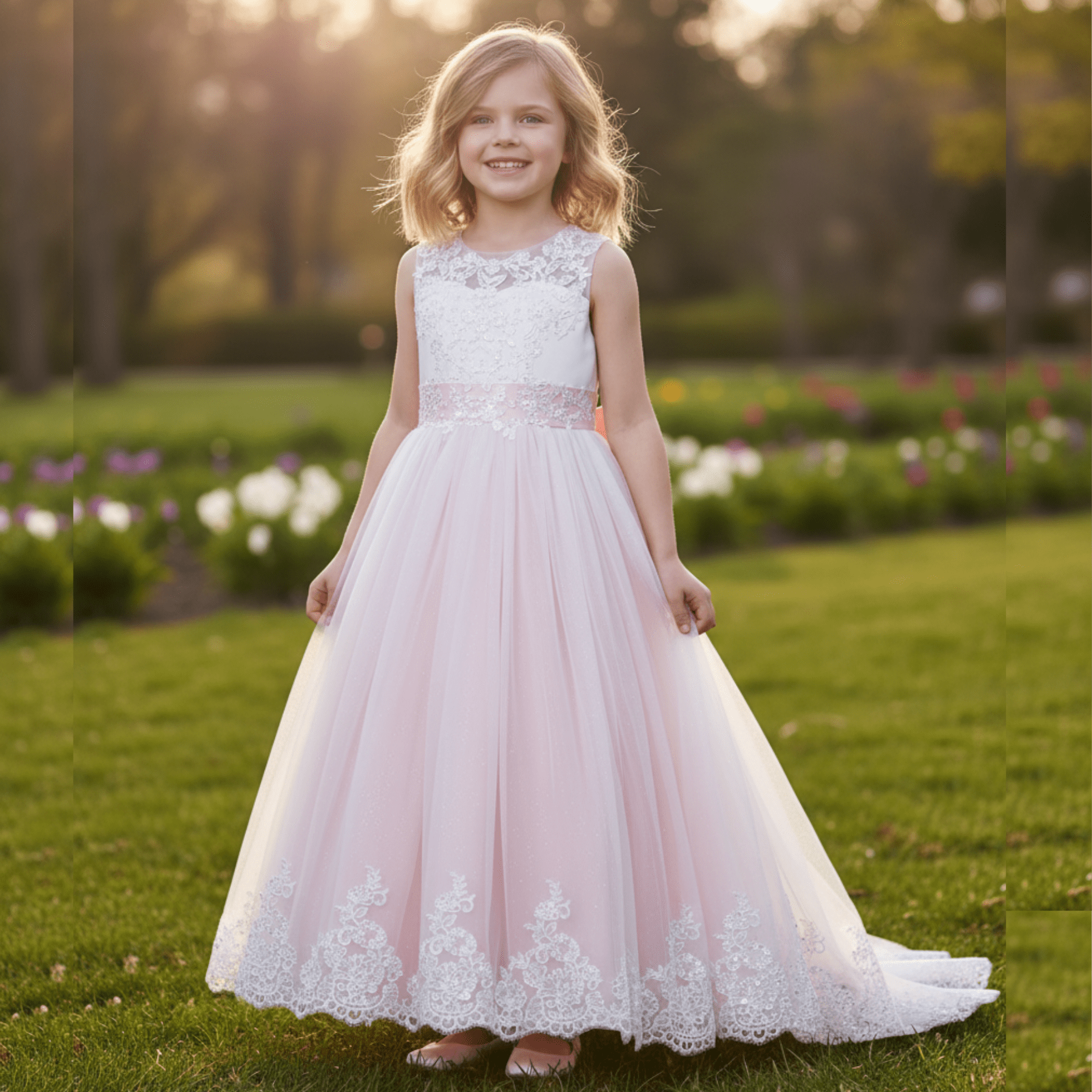 Vestido de ceremonia para niñas y adolescentes. Disponible desde la talla 4 hasta la talla 14.