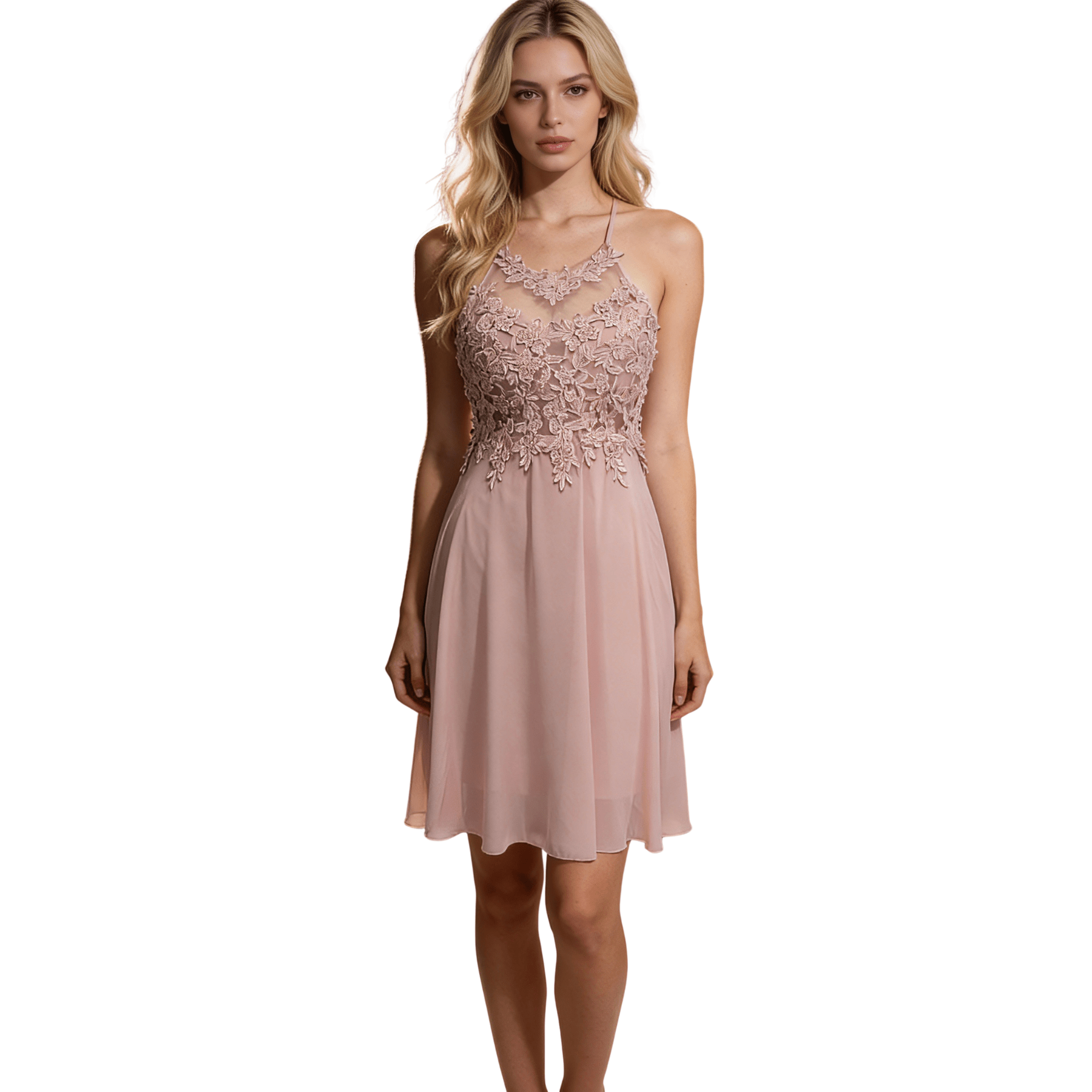Nuestro vestido de fiesta, confeccionado en encaje bordado de alta calidad, ha sido creado para mujeres que desean marcar la diferencia a través de la delicadeza y el lujo de los detalles.