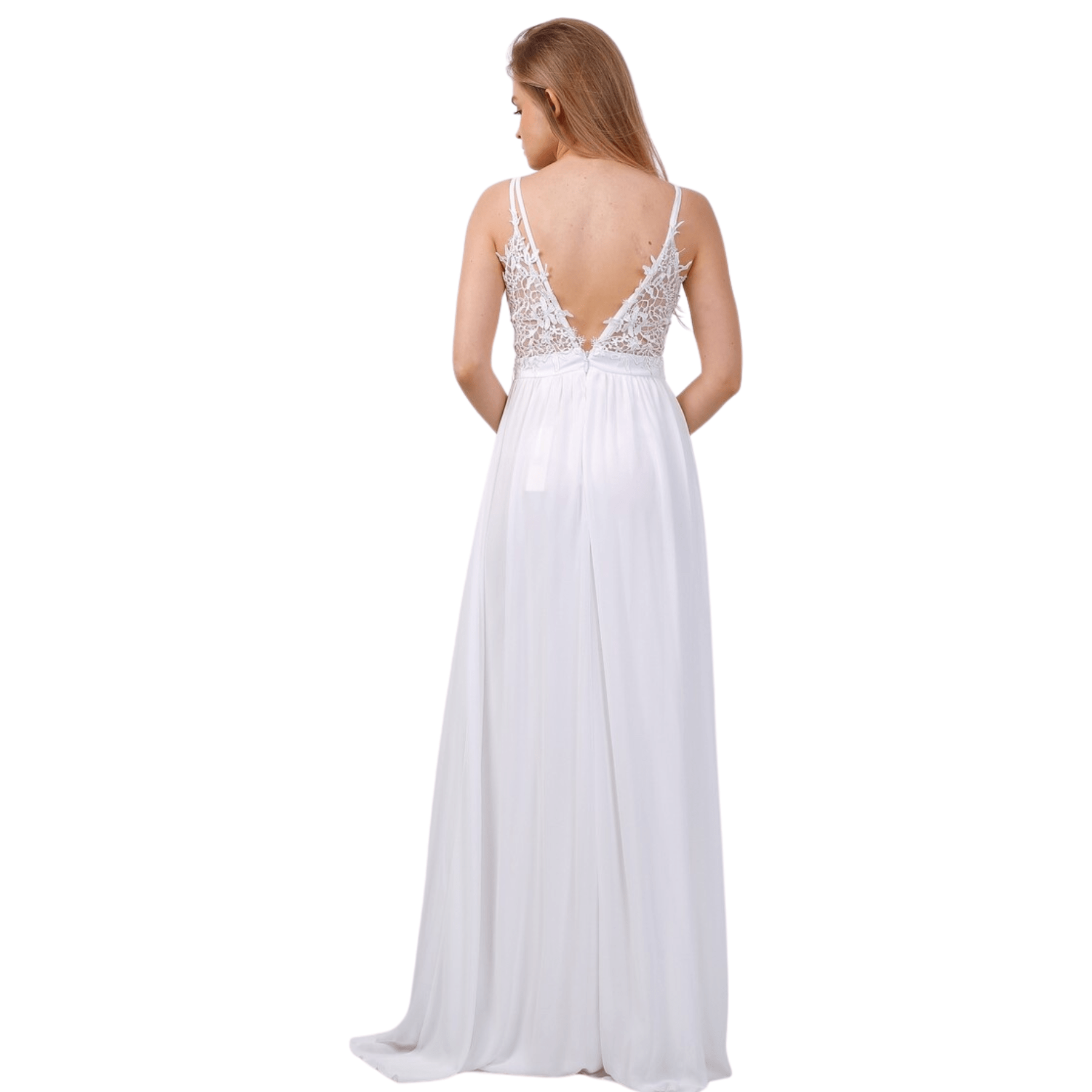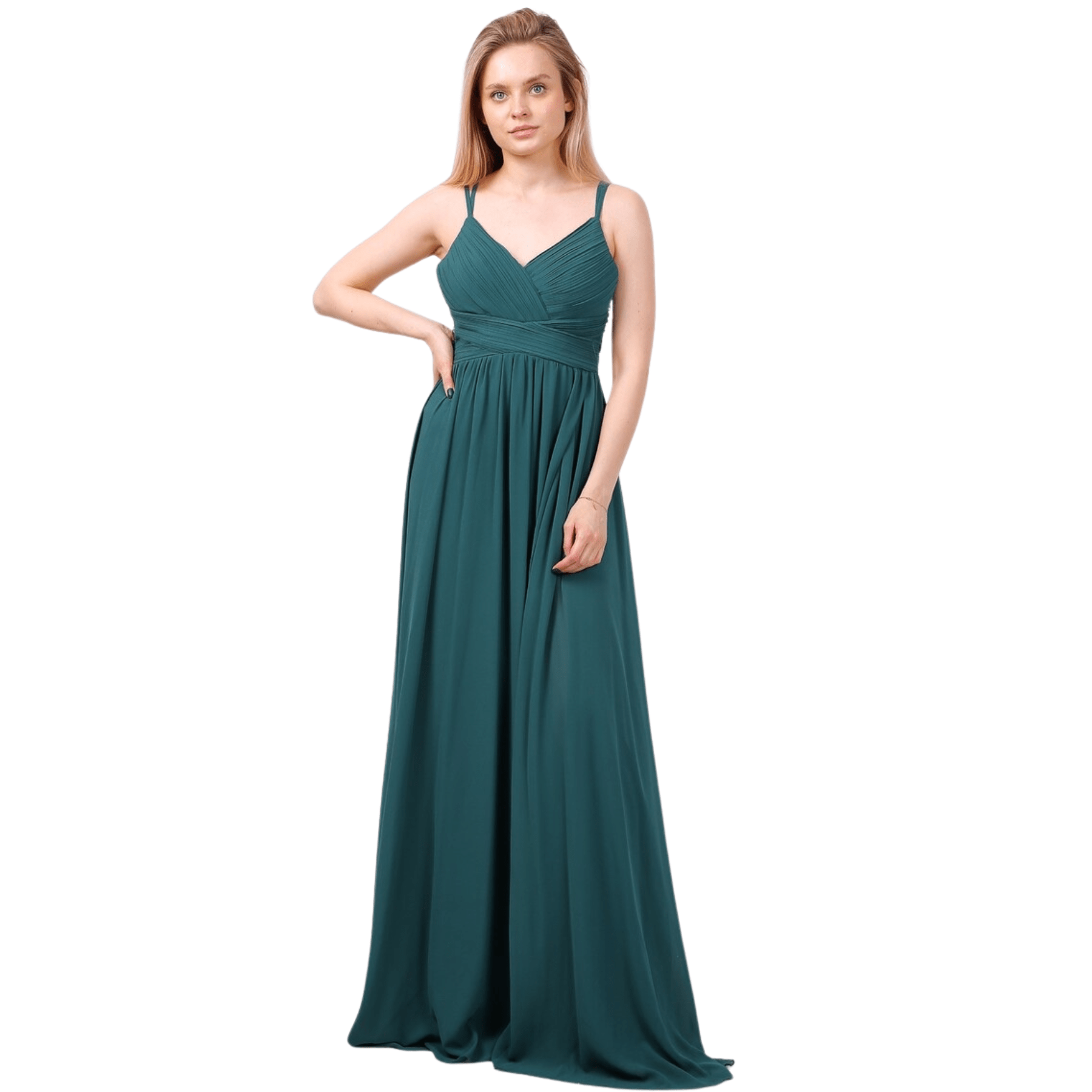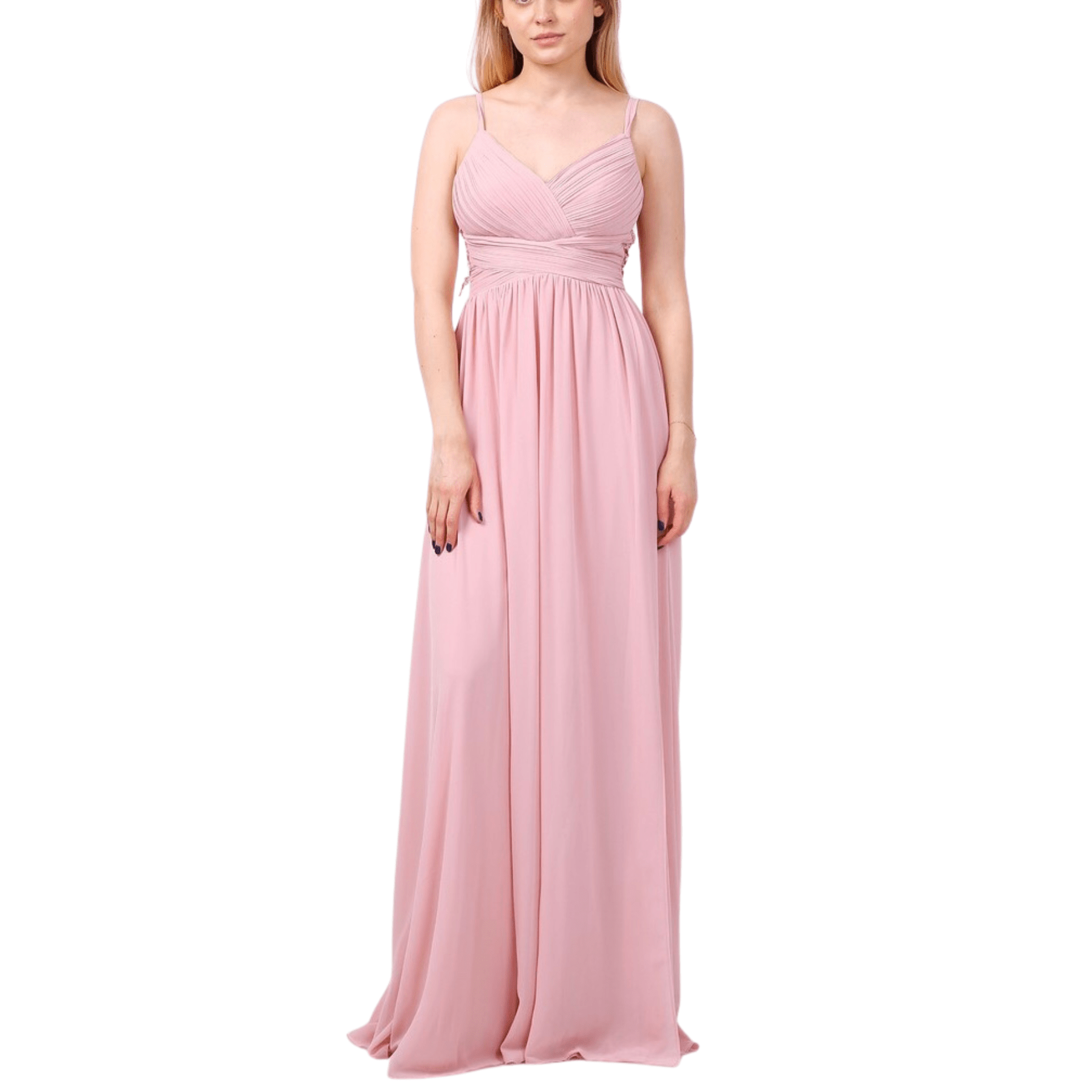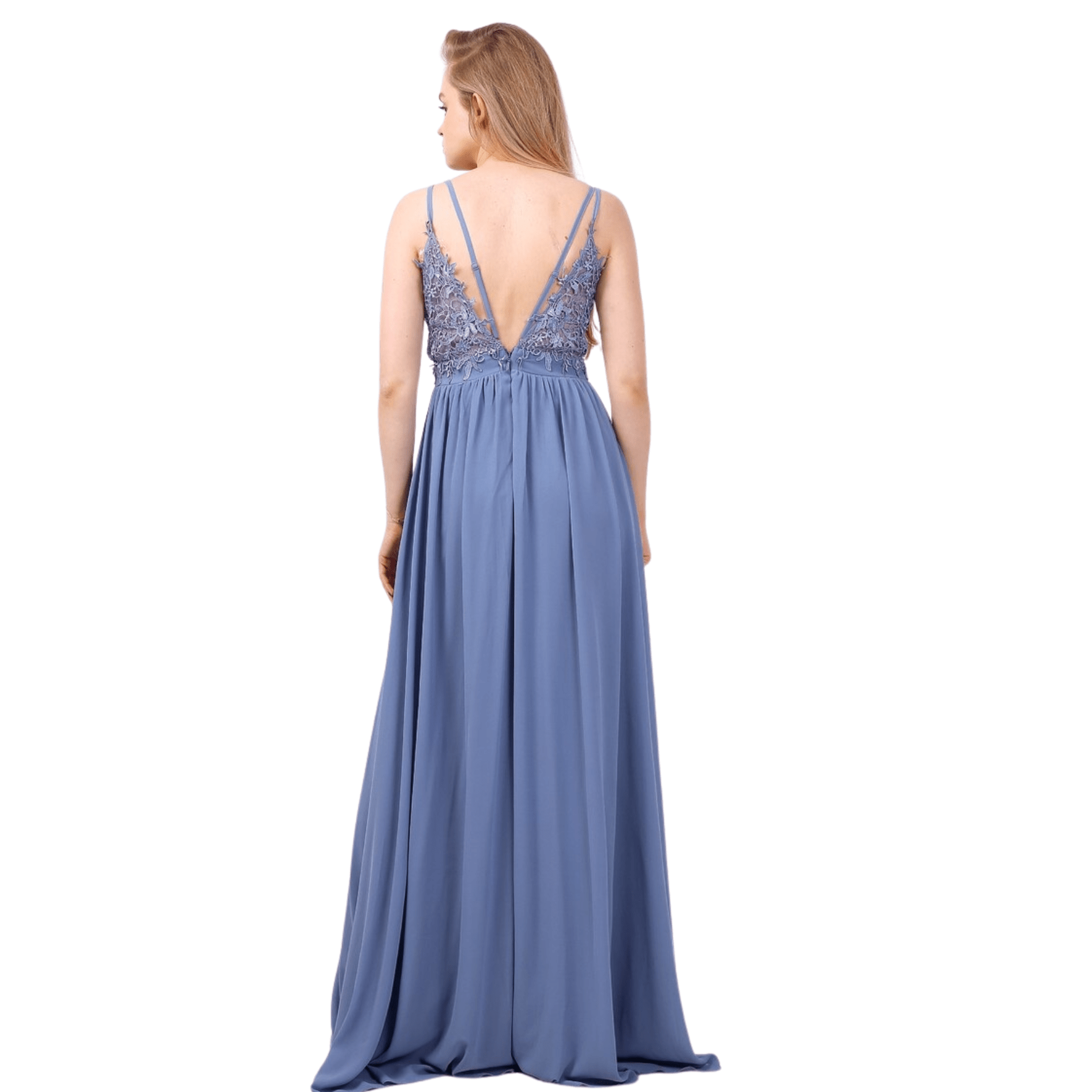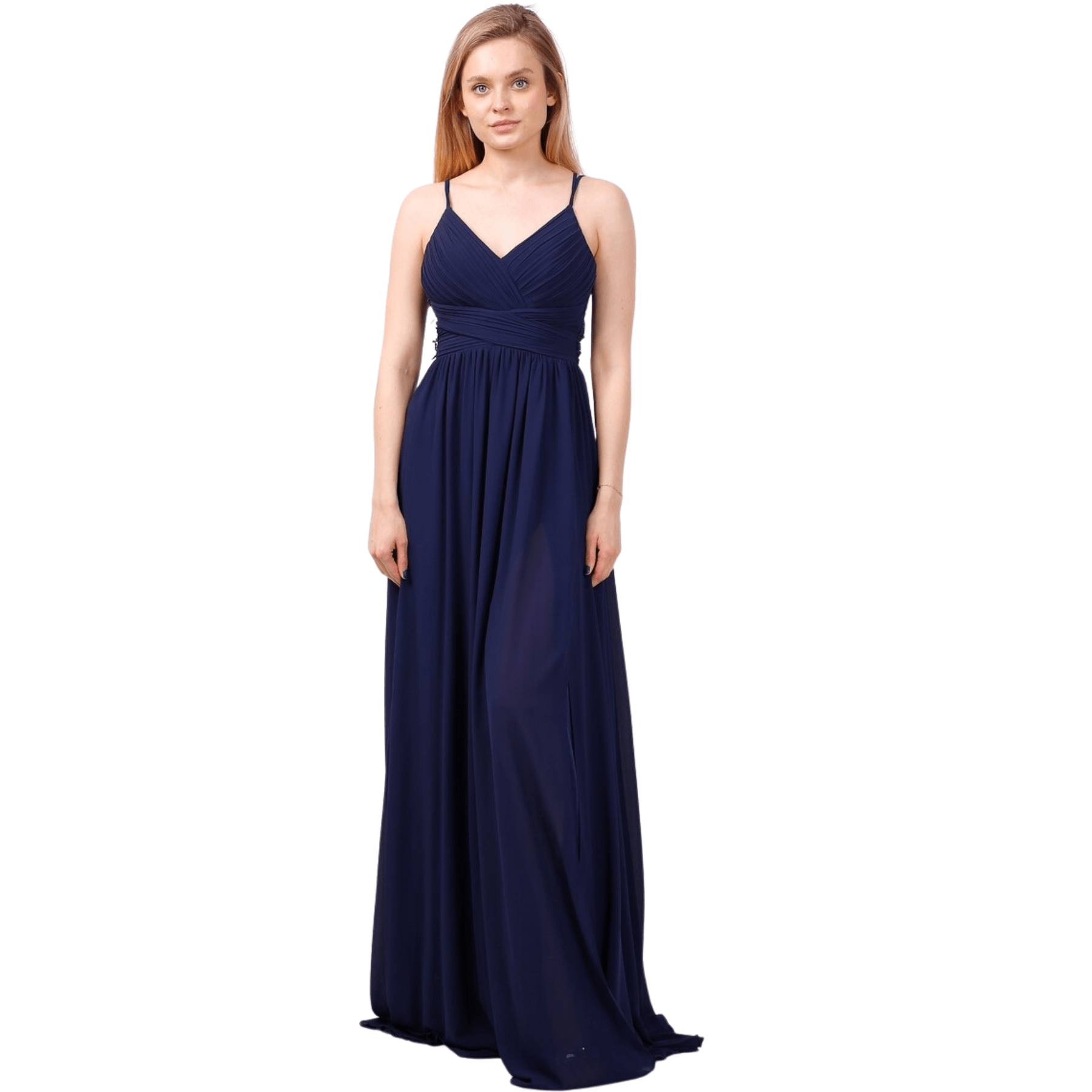Viste tu confianza con este diseño exclusivo. Su escote en pico añade un toque romántico, mientras que la raja lateral ofrece un movimiento fluido y moderno.